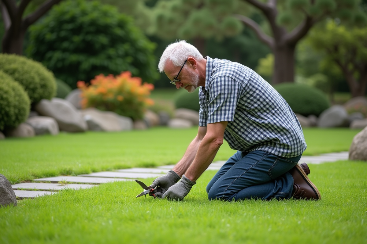 - Le gazon japonais s’impose comme compromis : il structure les massifs, borde les allées, valorise les zones peu piétinées du jardin japonais ou du jardin zen.
